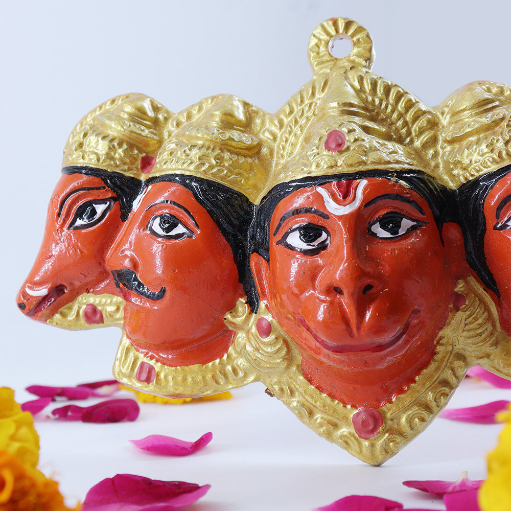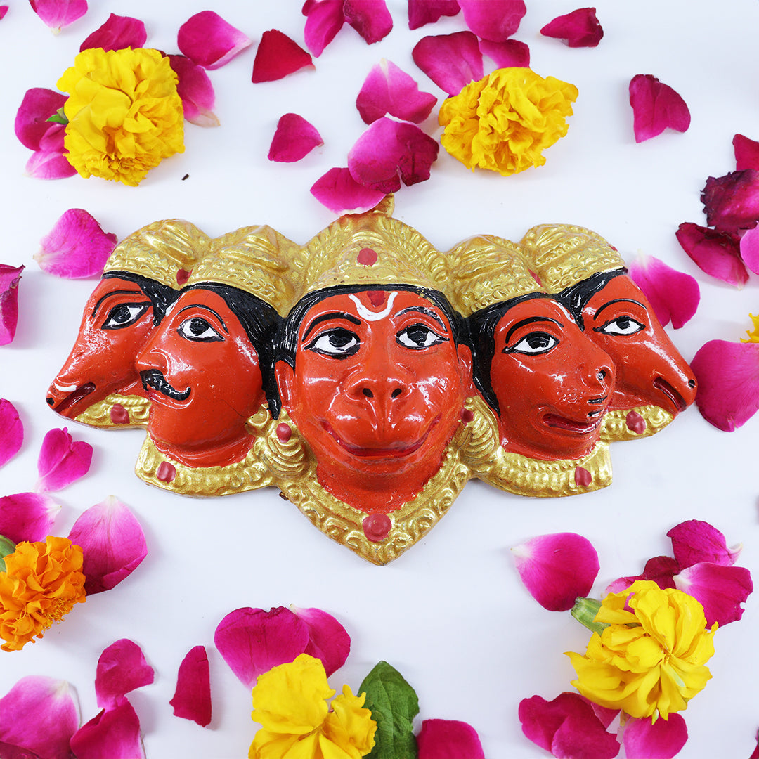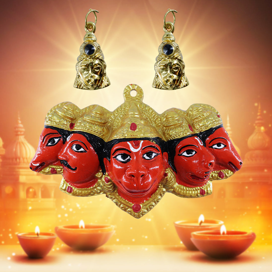 1:- पंचमुखी हनुमान मूर्ति: मूर्ति में पाँच दिव्य मुख हैं, जिनमें से प्रत्येक अद्वितीय आशीर्वाद प्रदान करता है। दक्षिण दिशा में नरसिंह का मुख आंतरिक भय और शत्रुओं को समाप्त करता है और सफलता प्रदान करता है। पश्चिम दिशा में गरुड़ का मुख बुरी नज़र, नकारात्मक शक्तियों और विषैले जीवों से सुरक्षा प्रदान करता है। पूर्व दिशा में हनुमान का मुख पापों का नाश करता है और मन को स्थिर करता है। उत्तर दिशा में वराह का मुख ग्रह दोषों को दूर करता है और समृद्धि लाता है। शीर्ष पर हयग्रीव का मुख संतान के लिए ज्ञान, समृद्धि और सफलता प्रदान करता है।