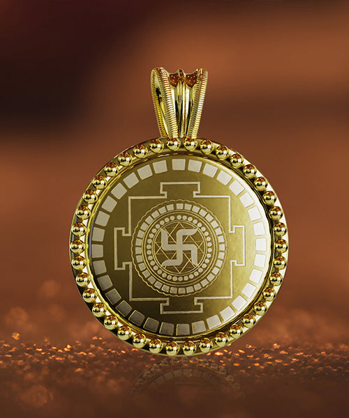 Laxmi Yantra Locket has a portrait of Goddess Laxmi embossed in it.Along with Swastika, a symbol representing the sun and connoting the meaning of auspiciousness. That helps flourish your house with wealth, generosity, and prosperity.